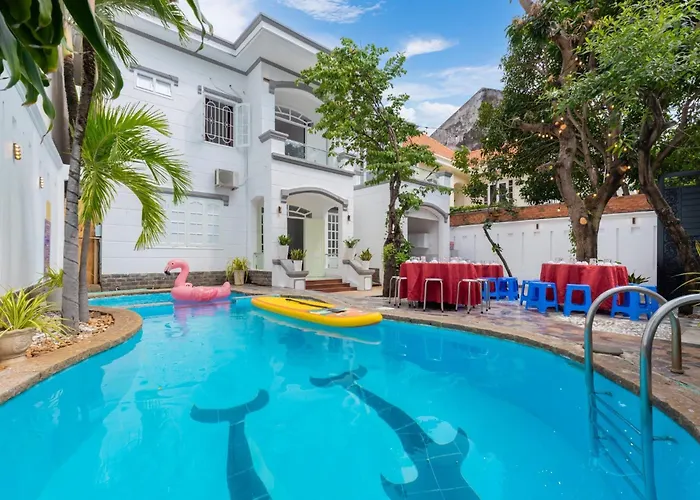 The 10-room Villa Ho Boi Vung Tau Gan Bien - 129 Vo Thi Sau is nestled around 600 metres from Back Beach Square, Vung Tau City and provides a plunge pool, a Jacuzzi, and a sauna.